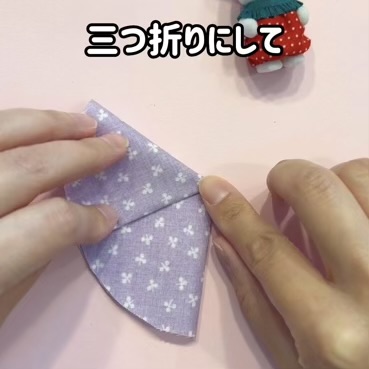 布を半分に折ったあと、さらに三つ折りにして形を整える