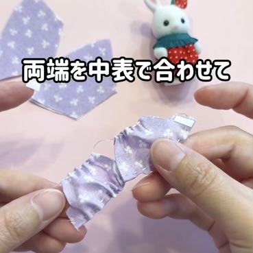 これから縫うであろう部分には両面テープが掛からないようにしておくと作りやすくなります。短い両面テープを使うと良いです。