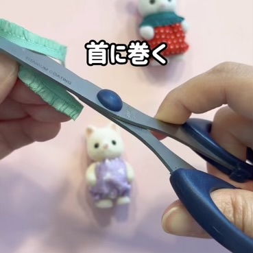 首周りにフリルテープをつければ、可愛くなります。今回は両面フリルを半分に切って使ってみました。