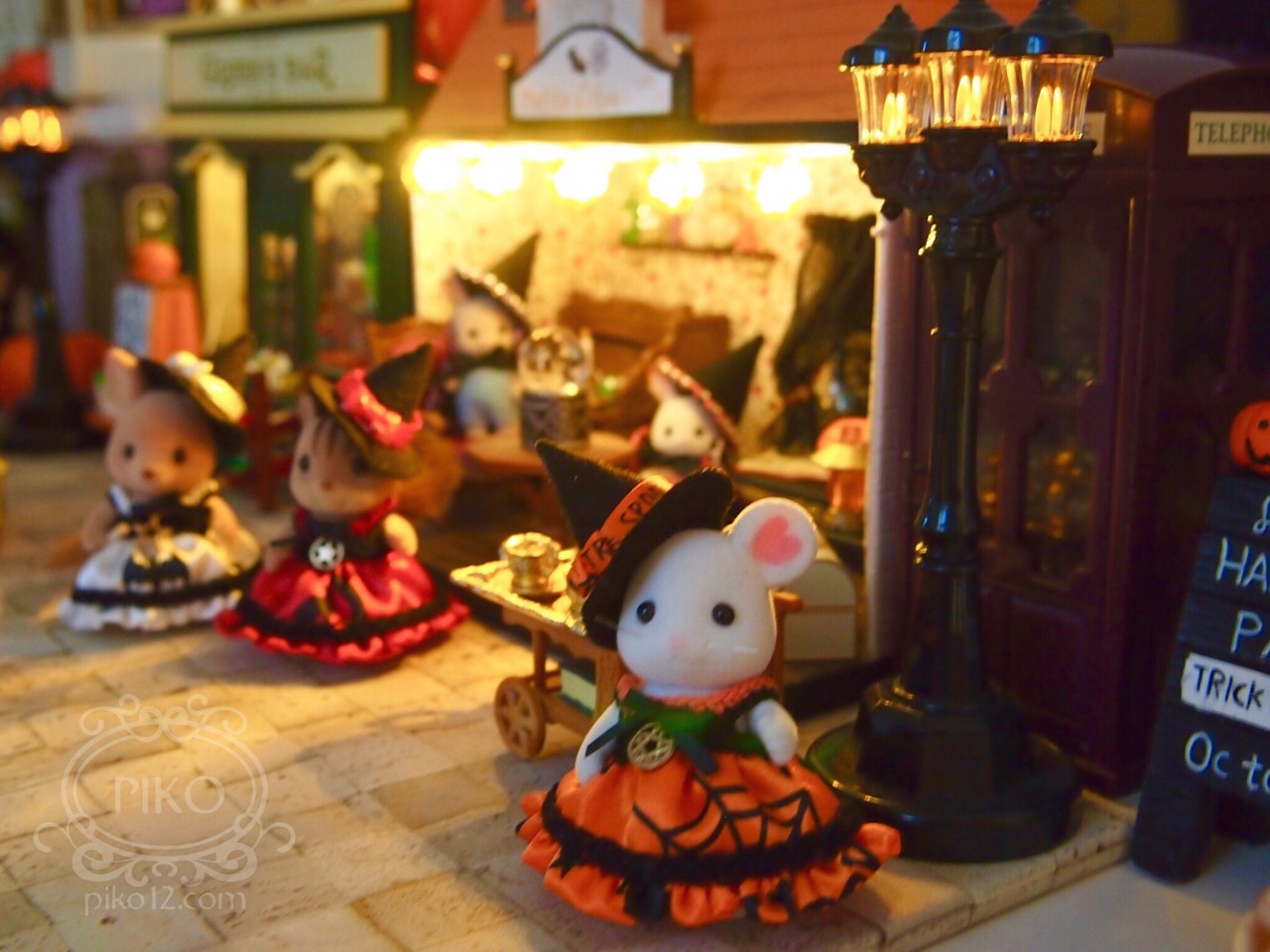 シルバニアハロウィン2019の様子。ライトアップして商店街みたいになりました。